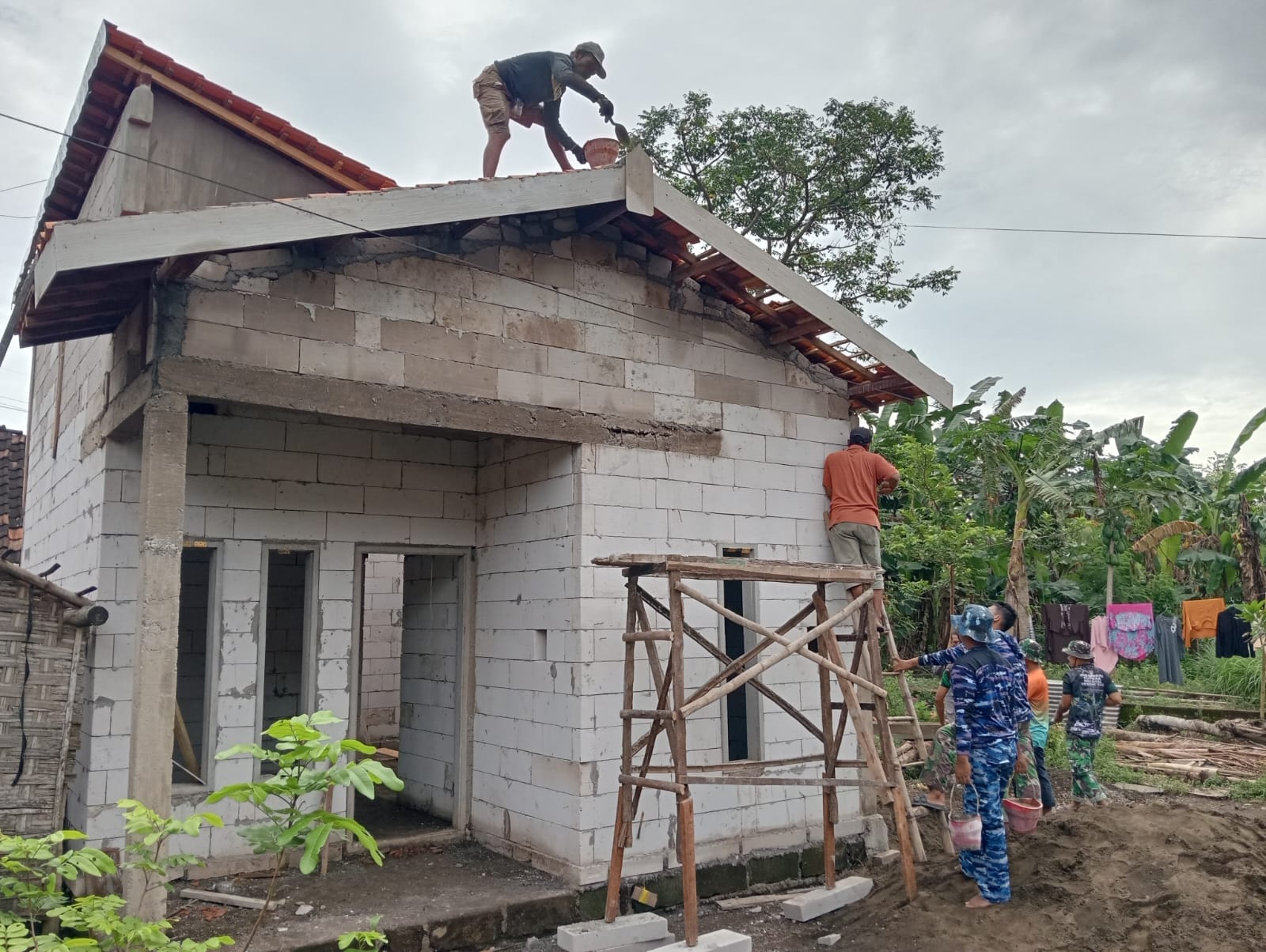 “Alhamdulillah progres pembangunan sudah mendekati tahap akhir. Saat ini pemasangan genting hampir selesai dan selanjutnya akan dilakukan plester dinding. Kami berharap rumah ini segera selesai sehingga Ibu Saidah bisa menempati rumah yang lebih layak dan aman,” ujar Serda Maulana.