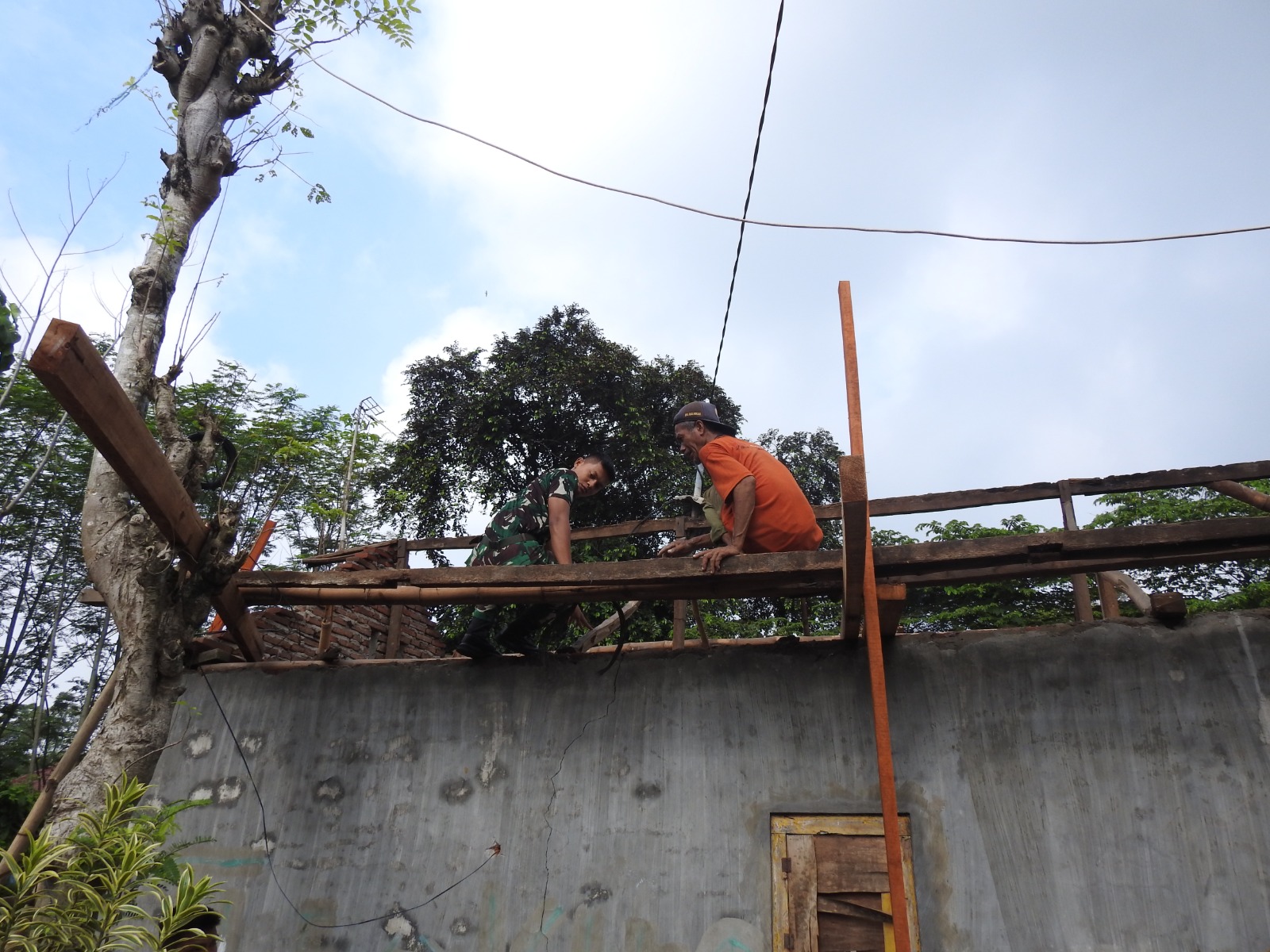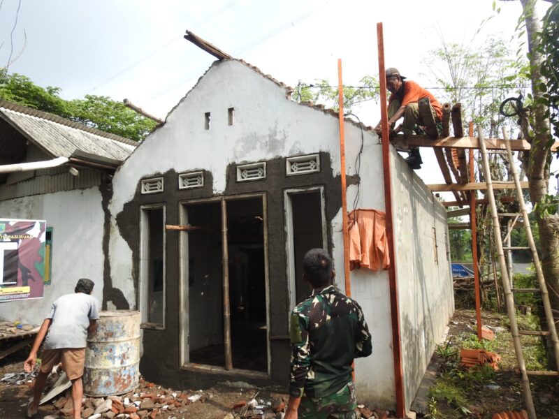 Progres pembangunan Rumah Tidak Layak Huni (RTLH) milik Bapak Saiful terus menunjukkan perkembangan signifikan. Saat ini, Satgas TNI Manunggal Membangun Desa (TMMD) Ke-127 Kodim 0819/Pasuruan bersama warga tengah melaksanakan pemasangan balok kayu sebagai penyangga atap rumah di Desa Tumpuk, Kecamatan Gondangwetan, Kabupaten Pasuruan, Sabtu (21/2/2026).Pemasangan balok kayu tersebut menjadi salah satu tahap penting dalam proses pembangunan, menandakan bahwa pengerjaan rumah sudah memasuki tahap akhir dan segera dapat ditempati dengan layak oleh pemiliknya.Dengan penuh semangat dan kebersamaan, anggota Satgas TMMD bersama masyarakat setempat bergotong royong menyelesaikan pekerjaan. Suasana kekeluargaan tampak jelas di lokasi, di mana TNI dan warga saling bahu-membahu demi mempercepat pembangunan.Anggota Satgas TMMD, Pratu Warsito, menyampaikan bahwa seluruh personel terus berupaya maksimal agar pembangunan rumah dapat segera rampung sesuai target. “Pemasangan balok kayu ini merupakan bagian penting dari struktur atap. Kami bersama warga bekerja dengan semangat agar rumah Bapak Saiful segera selesai dan bisa ditempati dengan nyaman,” ujarnya.Ia juga menambahkan bahwa kebersamaan antara TNI dan masyarakat menjadi kekuatan utama dalam pelaksanaan program TMMD, sehingga setiap pekerjaan dapat berjalan lancar dan tepat waktu. Program TMMD sendiri tidak hanya bertujuan membangun infrastruktur, tetapi juga mempererat kemanunggalan TNI dengan rakyat melalui semangat gotong royong dan kepedulian sosial kepada masyarakat yang membutuhkan.