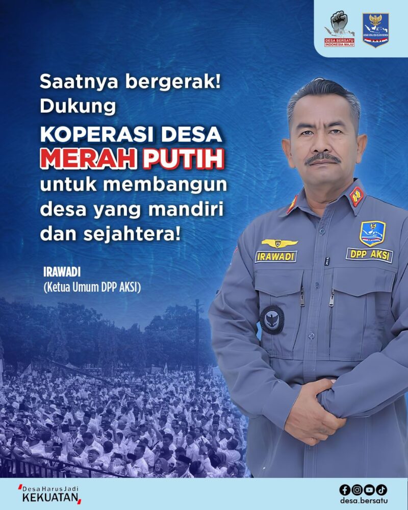 Ketua Umum DPP AKSI, ” Irawadi melihat Koperasi Desa Merah Putih sebagai kunci utama dalam mewujudkan desa yang mandiri dan berkelanjutan secara ekonomi.