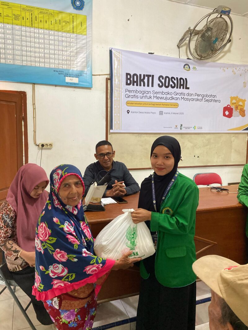LANGKAT , Teropong Barat.com | Mahasiswa Institut Jamiyah Mahmudiyah Langkat mengadakan kegiatan Bakti Sosial dengan Tema “Misi Kemanusiaan Melalui Program Bantuan Sembako dan Pengobatan Gratis Bagi Masyarakat di Desa Muka Paya Kecamatan Hinai ,Kamis (6/3/2025)