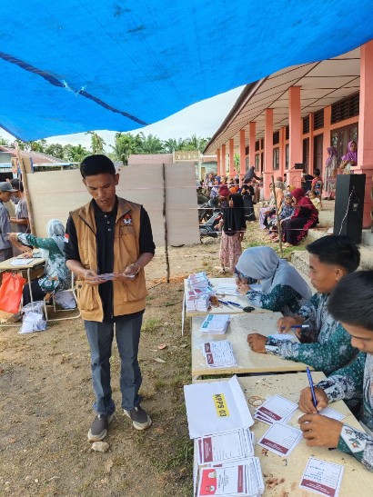 Petugas KPPS TPS 1 menyambut baik saat melihat kehadiran Malim Sabar Komisioner KIP Subulussalam dan menyerahkan kertas suara dan mempersilahkan komisioner tersebut ke bilik kotak suara untuk melakukan pencoblosan suara.