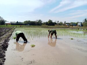 Berbagai upaya dilakukan untuk meningkatkan dan membantu masyarakat dalam meningkatkan swasembada pangan, salah satunya melaksanakan Komsos, pendampingan dan membantu petani dalam proses Pengolahan lahan, penaburan bibit padi, penyemaian benih padi, tanam padi, hingga panen.