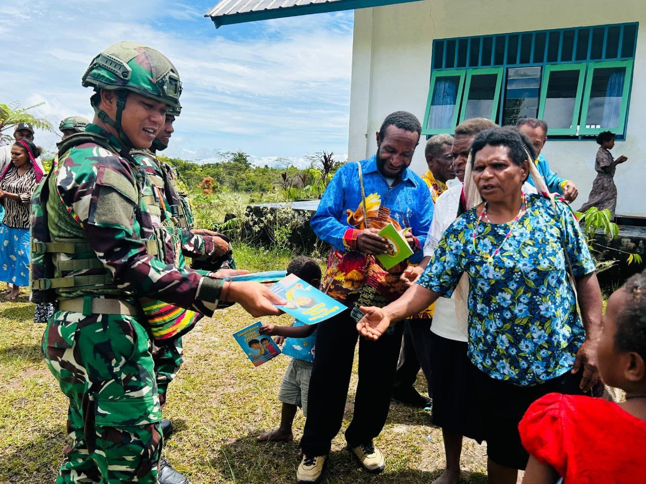 Apalapsili, 22 Februari 2026 – Dalam rangka mempererat hubungan dengan masyarakat, Satgas Yonif 521/DY melaksanakan kegiatan Komunikasi Sosial (Komsos) dengan membagikan buku cerita kepada anak-anak serta Alkitab kepada masyarakat di Distrik Apalapsili, Kabupaten Yalimo, Provinsi Papua Pegunungan.
