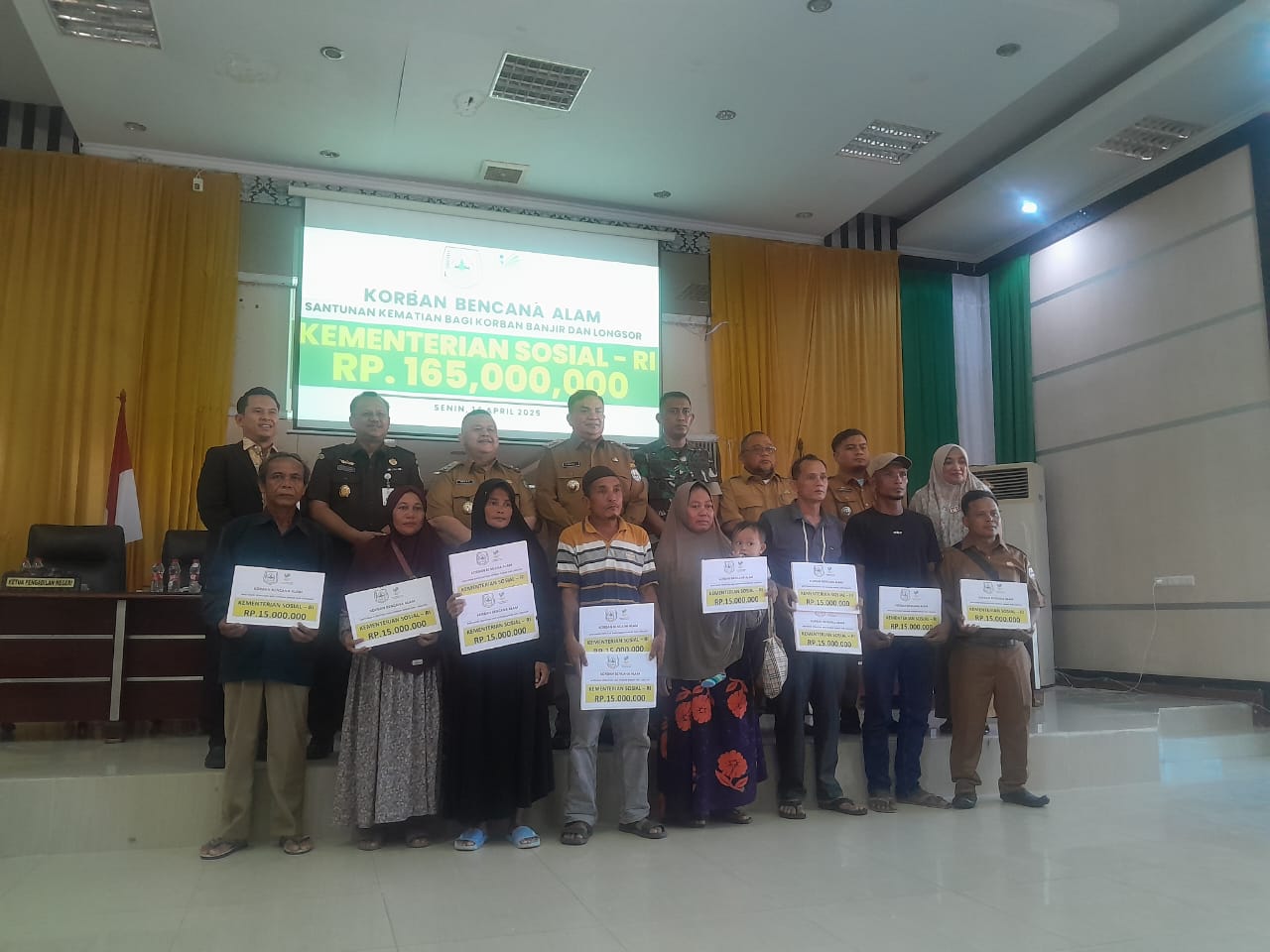 Kutacane, teropong Basat Com – Banjir dan Longsor yang terjadi di Kecamatan Leuser beberapa bulan yang lalu akhir tahun 2024, mengakibatkan 11 orang meninggal dunia. Keluarga/ahli waris mendapat santunan sebesar Rp 15. Juta masing masing dari Kementerian Sosial pusat.
