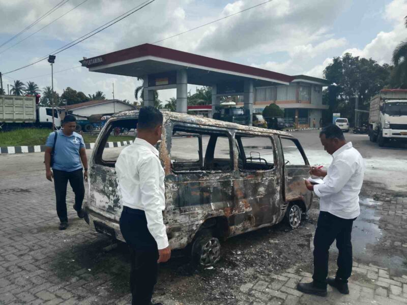 Medang Deras, Batu Bara – Sebuah mobil mini bus carry hangus terbakar di SPBU Pakam, Desa Pakam Raya, Kecamatan Medang Deras, Kabupaten Batu Bara, Senin (23/2/2026) pagi. Kebakaran diduga disebabkan oleh korsleting pada aki mobil.