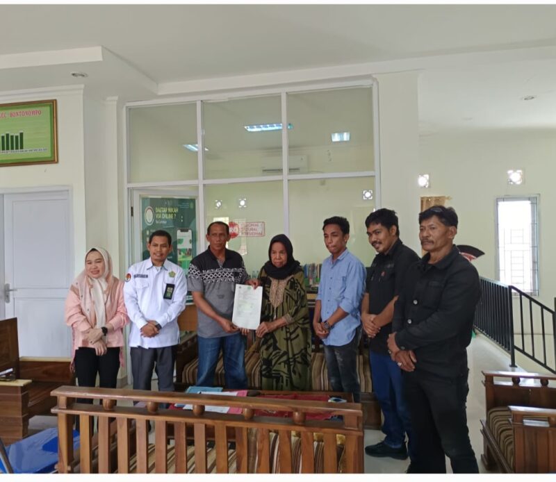 Gowa – teropongbarat.com | Lembaga Elang Hitam Nusantara Republik Indonesia (ELHAN-Ri) Mengapresiasi Kantor Urusan Agama (KUA) Kecamatan Bontonompo Kabupaten Gowa Sulawesi Selatan dimana sebelumnya sempat diberitakan beberapa hari lalu, dalam waktu 2x24jam pihak KUA Kecamatan Bontonompo berhasil mempertemukan dan menfasilitasi wakif Nadsir dan saksi-saksi dalan pengelolaan tanah wakaf seluas 284 meter persegi untuk lahan Masjid Nurul Yaqin Bontonompo.