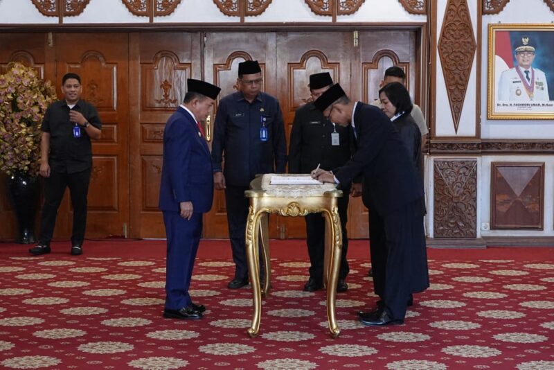 Jambi – Teropongbarat.com||Gubernur Jambi Dr. H. Al Haris, S.Sos, MH resmi melantik dan mengambil sumpah/janji 101 pejabat yaitu 18 Pejabat Fungsional dan 83 Kepala Sekolah di lingkup Pemerintah Provinsi Jambi, bertempat di Auditorium Rumah Dinas Gubernur, Jum’at (24/01/2024) pagi. Dengan pelantikan ini Gubernur Al Haris berharap agar para Kepala Sekolah dan Pejabat Fungsional dapat mengemban tanggung jawab, melaksanakan tugas dan fungsi dengan sebaik-baiknya, terutama dalam memaksimalkan program untuk pengembangan Sumber Daya Manusia (SDM), yang juga merupakan salah satu program Asta Cita, yang termasuk dalam delapan program prioritas yang dirancang oleh Presiden dan Wakil Presiden Republik Indonesia.