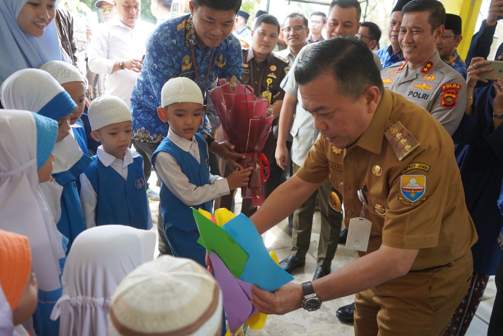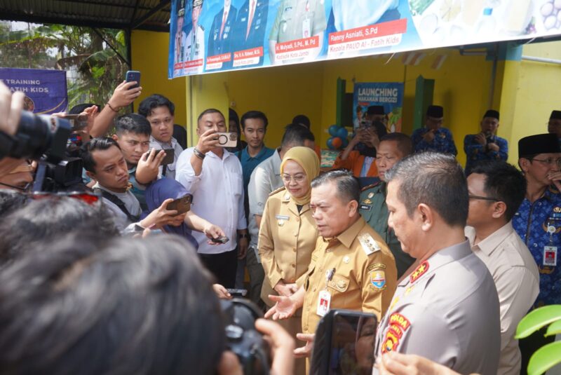 Jambi-Teropongbarat.com|| Gubernur Jambi Dr. H. Al Haris, S.Sos, MH melaunching Pelaksanaan program nasional Makan Bergizi Gratis atau MBG di Provinsi Jambi, Senin (17/02/2025) pagi. Orang nomor satu di Provinsi Jambi ini turun langsung melihat pelaksanaan MBG di Kota Jambi yaitu KB (Kelompok Bermain)/TK Al Fatih yang beralamat di Jalan Parhulutan Lubis No. 06 Telanaipura, dimana disekolah ini ada 92 murid KB dan TK.