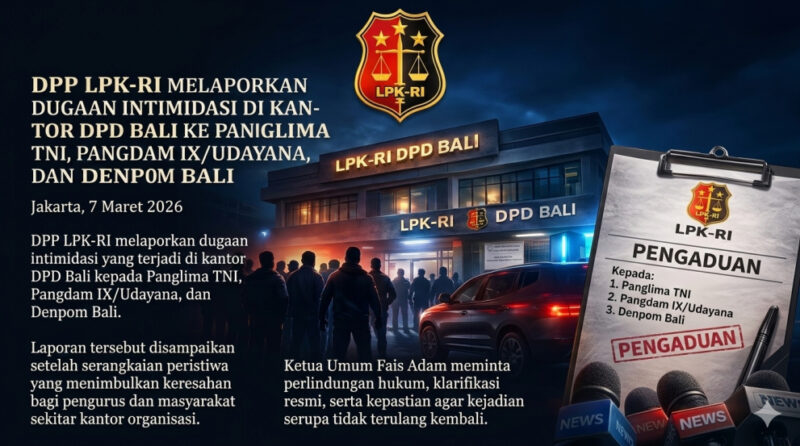 Dewan Pimpinan Pusat Lembaga Perlindungan Konsumen Republik Indonesia (DPP LPK-RI) resmi mengajukan pengaduan dan permohonan perlindungan hukum terkait serangkaian peristiwa yang terjadi di kantor LPK-RI DPD Bali.07/03/2026.