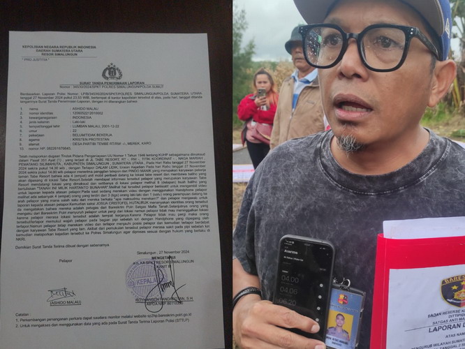 Ashido Malau yang diketahui sebagai karyawan di PT Sipiso Piso resmi membuat laporan ke Polres Simalungun sekira pukul 23.00 Wib dengan nomor : 345/XI/2024 SPKT yang diterima oleh R Pandapotan SH.