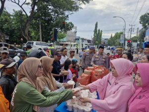 Sat Intelkam, Bag Ops Serta SPKT Polres Bantaeng menggelar aksi sosial dengan membagikan paket takjil gratis kepada pengendara dan pejalan kaki yang melintas.