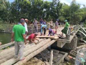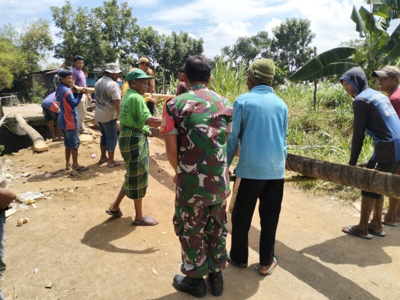 Manunggal Dengan Rakyat, Babinsa Koramil 1426-02/Polsel Bersama Warga Gotong Royong Bangun Jembatan