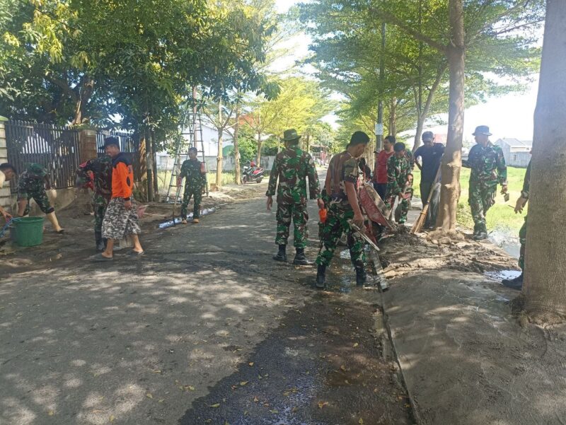 TAKALAR — teropongbarat.com|Wujudkan kemanunggalan TNI dengan rakyat, Personel Koramil 1426-03/Galut, Kodim 1426/Takalar bersama pemerintah Desa dan warga melaksanakan kegiatan kerja bakti pengecoran trotoar serta bersihkan pinggir jalan di Desa Aeng Batu-batu Kecamatan Galesong Utara Kabupaten Takalar, Minggu 18/05/2025.