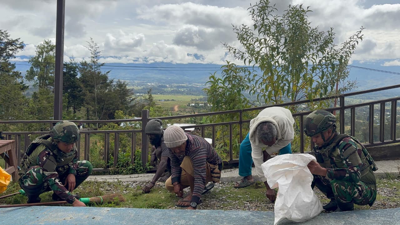 Napua, // Teropongbarat.com -Dalam upaya menjaga kelestarian lingkungan sekaligus mempererat hubungan dengan masyarakat, Satgas Yonif 521/DY melaksanakan kegiatan karya bhakti bersama warga di kawasan wisata Distrik Napua, Kabupaten Jayawijaya, Papua Pegunungan. (5/4/2026).Kegiatan karya bhakti tersebut difokuskan pada pembersihan area wisata, penataan lingkungan, serta pengumpulan sampah yang tersebar di sekitar lokasi. Dengan penuh semangat kebersamaan, personel Satgas Yonif 521/DY dan masyarakat bahu-membahu membersihkan lingkungan demi menciptakan kawasan wisata yang bersih, nyaman, dan asri.