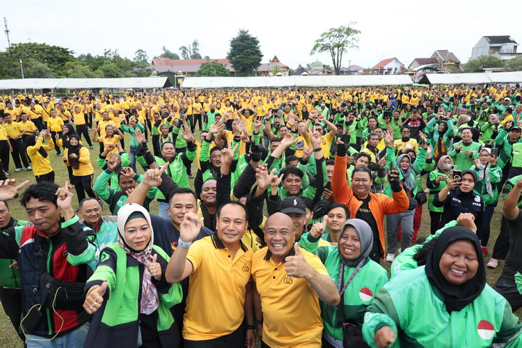Pekanbaru, – Kapolda Riau Irjen Pol Herry Heryawan bersama personel menggelar olahraga bersama ratusan ojek online (Ojol), Selasa, 9 September 2025, pagi.