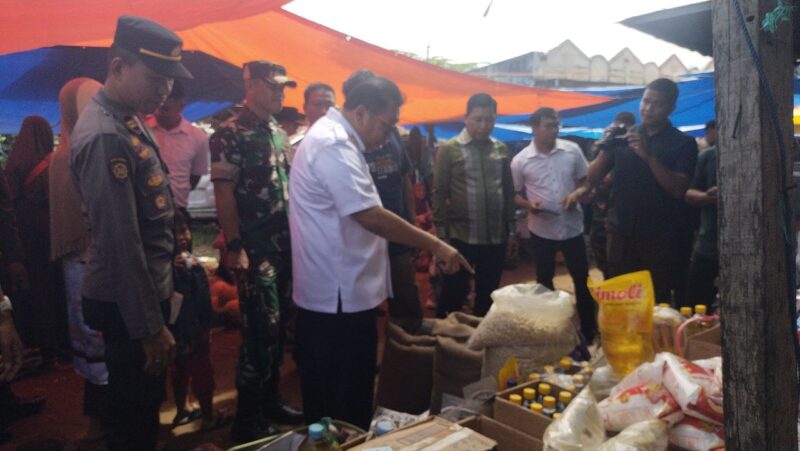 TAKALAR – teropongbarat.com|Guna mengetahui harga bahan pokok di pasaran, Dandim 1426/Takalar Letkol Inf Faizal Amin, S.I.P dampingi Bupati Takalar Ir H. Muhammad Firdaus Dg Manye, MM Sidak Pasar pemantauan harga di pasar Palleko dalam rangka Optimalisasi Penanganan Inflasi oleh Tim Pengendali Inflasi Daerah (TPID) Kab. Takalar. Rabu, (04/06/2025).