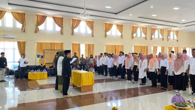 Pelantikan dan pengambilan sumpah/janji berlangsung di gedung serba guna Balai Latihan Kerja (BLK) yang terletak di Desa Baruga, Kecamatan Pa’jukukang. Minggu (3/11/2024).
