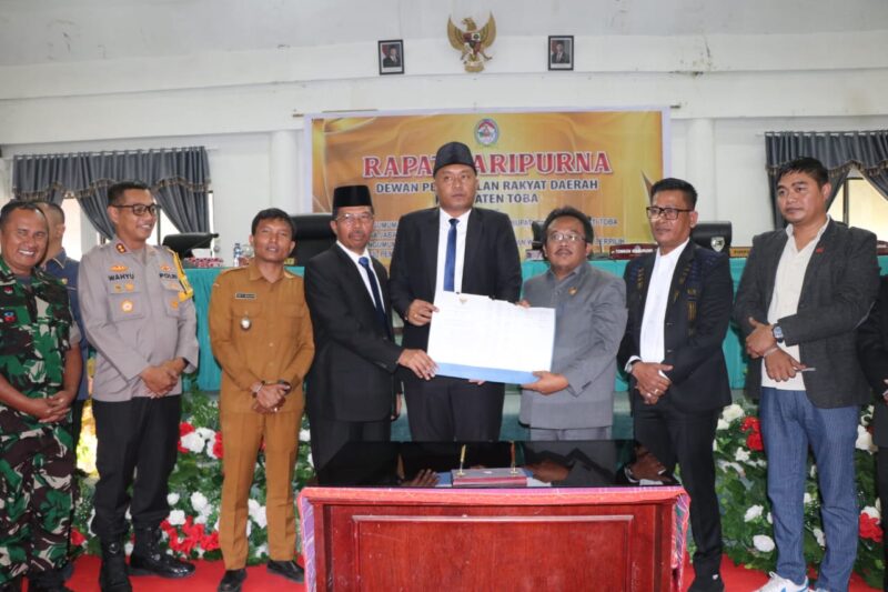 Dewan Perwakilan Rakyat Daerah Kabupaten Toba menggelar Paripurna Pengumuman Usulan Akhir Masa Jabatan Bupati/Wakil Bupati Kabupaten Toba Masa Jabatan 2021-2025 dan Pengumuman Penetapan Pasangan Bupati dan Wakil Bupati Toba Terpilih Hasil Pemilu Serentak Tahun 2024 di gedung DPRD Toba, Senin (10/2/2025).