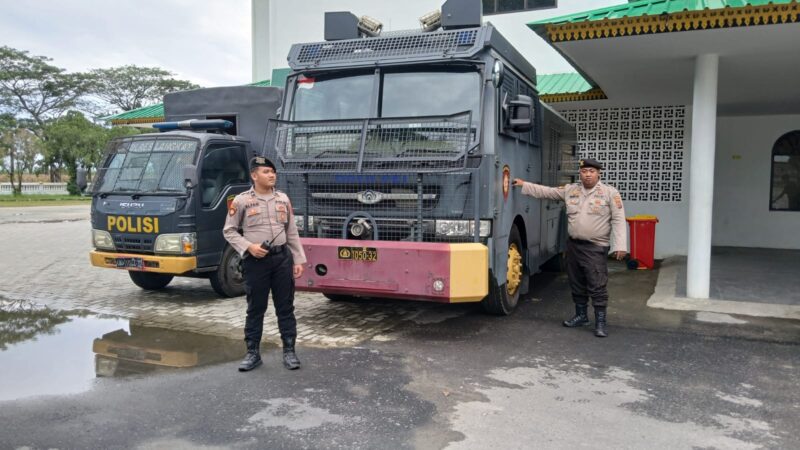 Langkat Teropong Barat| Pasca Pelaksannaan Pilkada Serentak tahun 2024, Polres Langkat Polda Sumatra Utara memperketat pengamanan di Kantor Penyelenggara Pemilu Kabupaten Langkat seperti KPU, Bawaslu dan Gudang Logistik KPU Kabupaten Langkat, Senin (09/12/2024).