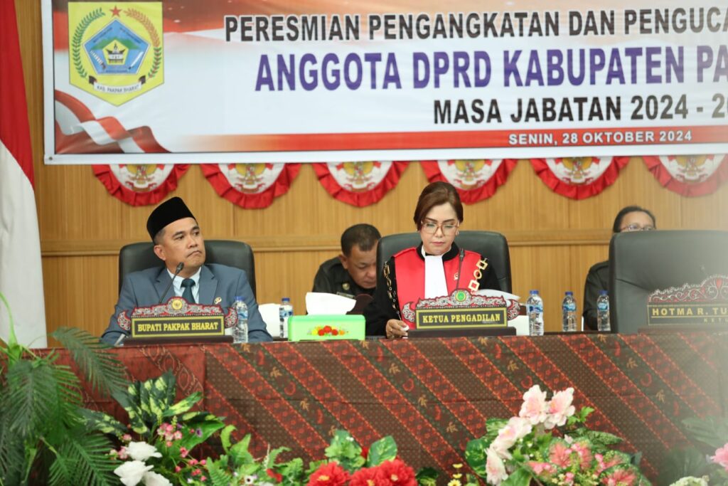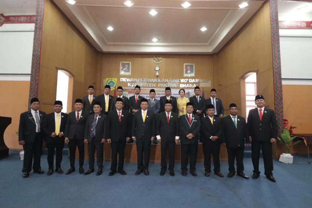 Pelantikan Anggota DPRD Kabupaten Pakpak Bharat Periode 2024-2029 dihadiri oleh : Pjs. Bupati Pakpak Bharat Dr. Naslindo Sirait, Dandim 0206 Letkol Goklas Pirtahan Silaban, Kapolres Pakpak Bharat AKBP Oloan Siahaan, S.I.K, M.H, Kejari Dairi Okto Rikardo, S.H, Forkopimda Pakpak Bharat, Partai Politik, Ketua KPU Pakpak Bharat, Ketua Bawaslu Pakpak Bharat, Tokoh Agama, Tokoh Masyarakat, Tokoh Pemuda, dan insan Pers.