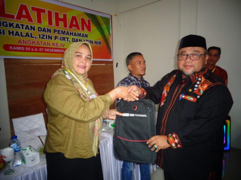 Akhirnya usai membuka pelatihan, Sekdakab Yusrizal,ST dan Kadis Koperasi UKM, dan Transmigrasi, Kamis (5/12)2024 secara simbolis menyerahkan peralatan pelatihan pada pelaku UMKM tersebut itu(Sadikin)