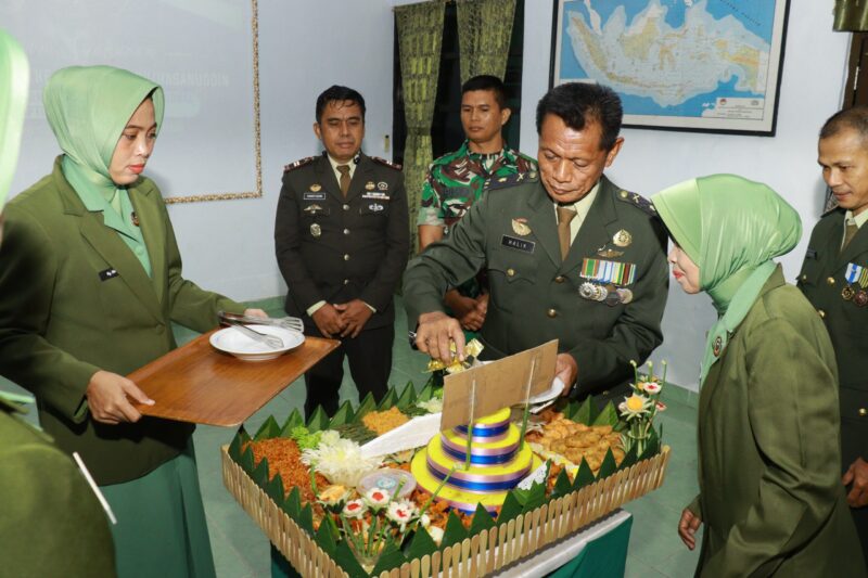 Pemotongan tumpeng oleh Kasdim 1426/takalar yang akan diberikan kepada prajurit yang terlama dinas di satuan dan kepada prajurit yang berprestasi. (Pendim 1426)