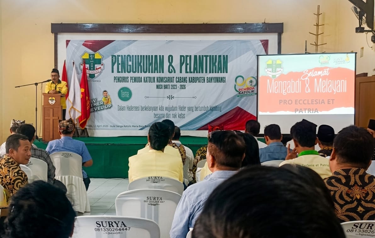 BANYUWANGI// Pengurus Pemuda Katolik Komisariat Cabang Kabupaten Banyuwangi periode 2025–2028 resmi dikukuhkan dalam sebuah prosesi yang berlangsung khidmat di Aula Gereja Ratu Damai Banyuwangi, Minggu (12/4/2026). Kepengurusan baru ini dipimpin oleh Agustinus Iwan Sanjaya sebagai ketua.