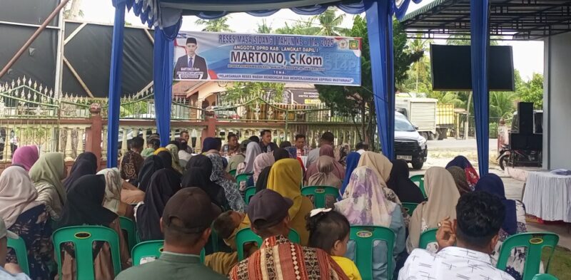 LANGKAT Teropong Barat | Perwakilan masyarakat 10 Dusun berjumlah 200 orang di Desa Perdamaian sangat antusias bertatap muka langsung ,menghadiri acara reses perdana anggota DPRD Langkat dapil II Martono S.Kom bertempat Perumahan Griya Permai Langkat ,Jalan Tengku Amir Hamzah,Kamis (30/1/2025) Pukul 14.00 Wib