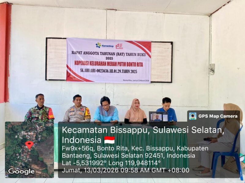 BANTAENG, Teropong Barat.com, – Babinsa Kelurahan Bonto Rita, Koramil 1410-01/Bissappu, Kodim 1410/Bantaeng, Serma Syamsuddin Bagio menghadiri kegiatan Rapat Anggota Tahunan (RAT) Tahun Buku 2025 Koperasi Kelurahan Merah Putih yang dilaksanakan di Kantor Lurah Bonto Rita, Kecamatan Bissappu, Kabupaten Bantaeng. Jumat (13/03/2026)