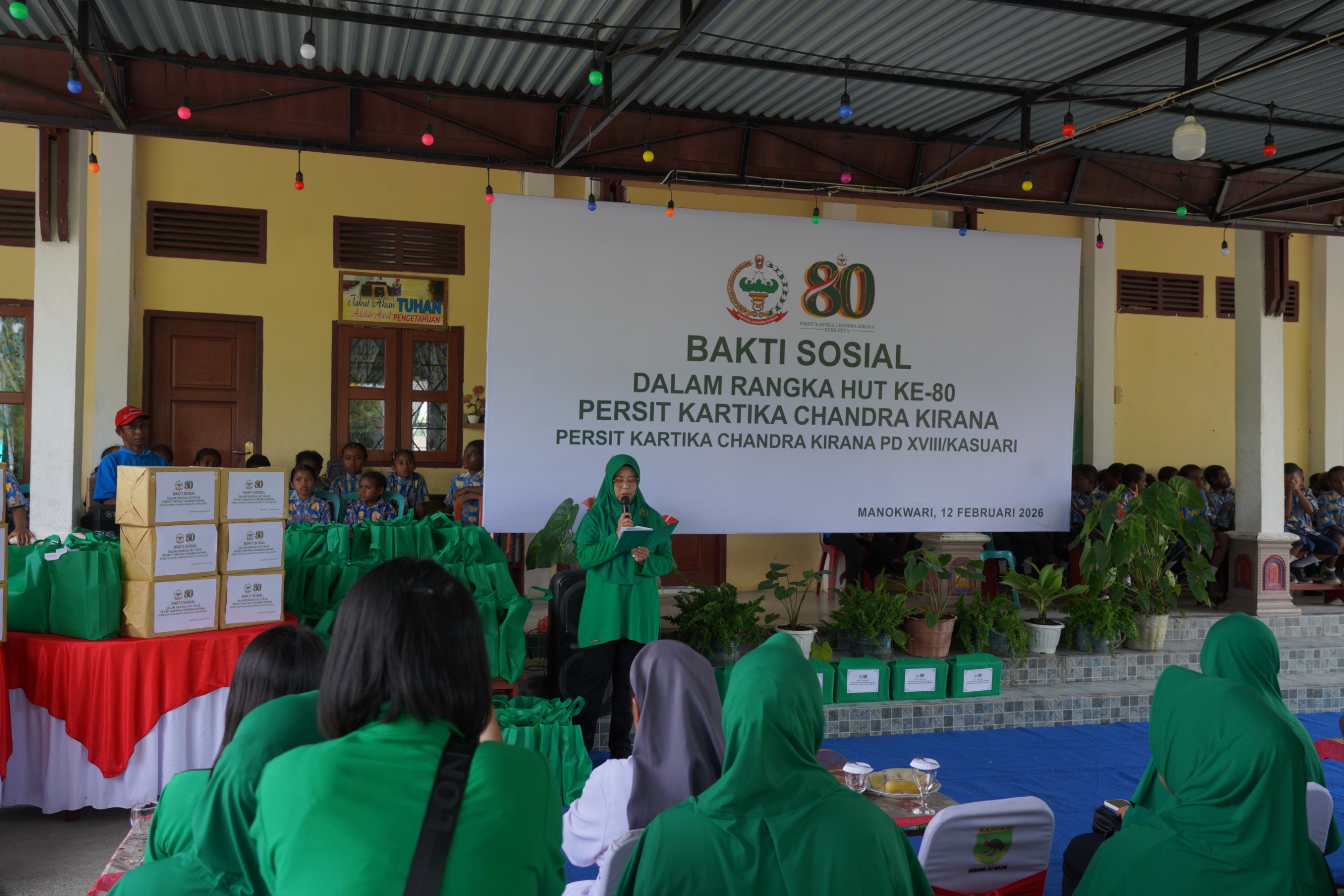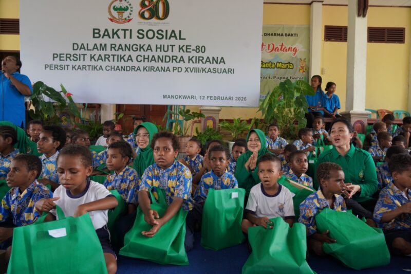Manokwari -// Teropongbart.com Dalam rangka memperingati Hari Ulang Tahun ke-80 Persit Kartika Chandra Kirana, Persit KCK PD XVIII/Kasuari menggelar bakti sosial di Panti Asuhan Santa Maria Yayasan Amal Dharma Bakti, SP 8 Masni, Kabupaten Manokwari, Kamis (12/2/2026). Kegiatan ini turut dihadiri pengurus Yayasan Kartika Jaya Cabang XXII dan Dharma Pertiwi Daerah P sebagai bentuk kepedulian terhadap masyarakat, khususnya anak-anak panti asuhan. Momentum tersebut menjadi ajang silaturahmi sekaligus wujud perhatian organisasi terhadap sesama.