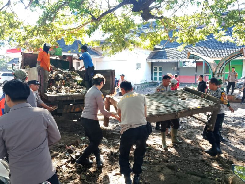 Polisi dan TNI berjibaku membersihkan endapan lumpur didalam lokasi hingga jalan gang permukiman. Berbekal sekop hingga cangkul, polisi mengeruk lumpur. Sementara 2 truk pengangkut sampah disiagakan untuk mengangkut sisa sampah dari aksi bersih-bersih dan kurver pada hari Senin 7 Juli 2025 tersebut.