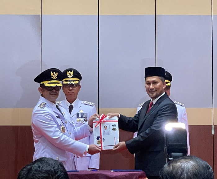 Kepala Dinas ESDM Aceh, Taufik, ST, M.Si dilantik, dan diambil sumpah jabatan menjadi Pj Bupati Aceh Tenggara menggantikan Drs Syakir, MSi, di Anjong Mon Mata Banda Aceh, Jumat (11/10).2024.