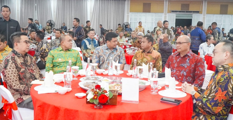 Medan Teropong Barat | Pj. Bupati Langkat, H.M. Faisal Hasrimy, AP, MAP, menghadiri acara Malam Lepas Sambut Pangdam I/Bukit Barisan (BB) di Aula Tengku Rizal Nurdin, Rumah Dinas Gubernur Sumatera Utara, Medan, Selasa malam (3/12/2024). Acara tersebut digelar untuk memberikan penghormatan kepada Letjen TNI Muhamad Hasan yang telah menyelesaikan masa tugasnya sebagai Pangdam I/BB sekaligus menyambut Mayjen TNI Rio Firdianto sebagai pejabat baru.