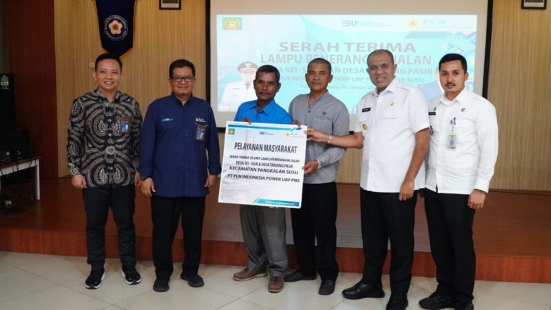 LANGKAT ,Teropong Barat| Pj. Bupati Langkat, H.M. Faisal Hasrimy, AP, M.AP, menghadiri acara serah terima lampu penerangan jalan untuk Desa Sei Siur dan Desa Tanjung Pasir di Aula Lubuk Kertang, Kecamatan Pangkalan Susu, Rabu (8/1/2025). Acara ini merupakan kolaborasi antara Pemerintah Kabupaten Langkat dan PT PLN Indonesia Power UBP Pangkalan Susu untuk meningkatkan kualitas infrastruktur desa.