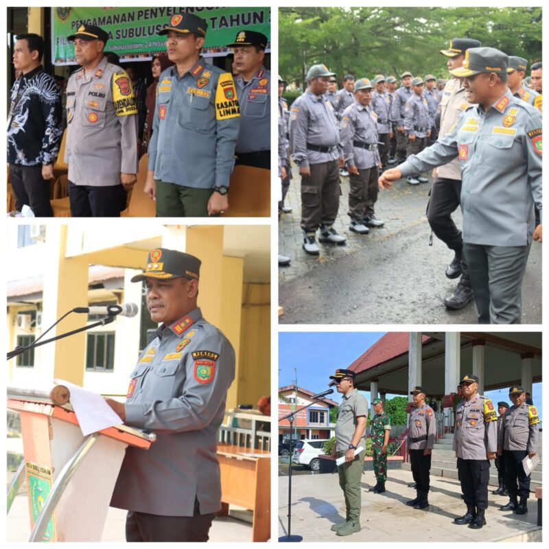 Subulussalam,teropongbarat.co. Apel siaga sekaligus acara serah-terima Perlengkapan dan penyerahan petugas Linmas ketertiban masyarakat dari Pemerintah Kota Subulussalam pada Komisi Independen Pemilu Kota Subulussalam berlangsung dinamis di pelataran kantor Walikota Subulussalam, Minggu (24/11/2024).
