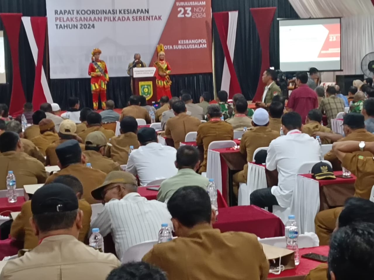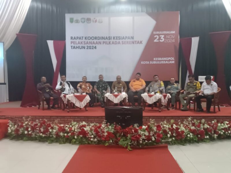 Subulussalam, teropongbarat.co. Rapat Koordinasi Kesiapan Pilkada Serentak tahun 2024 Pemerintah Kota Subulussalam, KIP dan Forkopimda serta pemerintah Kecamatan dan Kampong berlangsung aktif dan dinamis di Hermes One Hotel Kota Subulussalam, Sabtu (23/11/24).