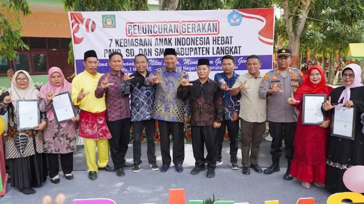 LANGKAT, Teropong Barat.com | Bupati Langkat H. Syah Afandin, SH secara resmi meluncurkan Gerakan 7 Kebiasaan Anak Indonesia Hebat untuk jenjang PAUD, SD, dan SMP se-Kabupaten Langkat. Kegiatan ini digelar dalam rangka memperingati Hari Pendidikan Nasional (Hardiknas), bertempat di SMP Negeri 1 Binjai, Jalan S. Parman, Kwala Begumit, Kecamatan Binjai, pada Sabtu, 3 Mei 2025.