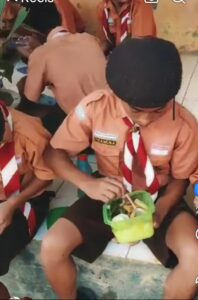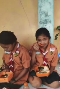 Pakpak Bharat, Teropong Barat.com/Puluhan para pelajar di SMP Negeri 6 Satu Atap Kerajaan, Desa Kuta Meriah pagi ini sedang menyantap bekal sarapan pagi yang dipersiapkan oleh para orang tua murid.