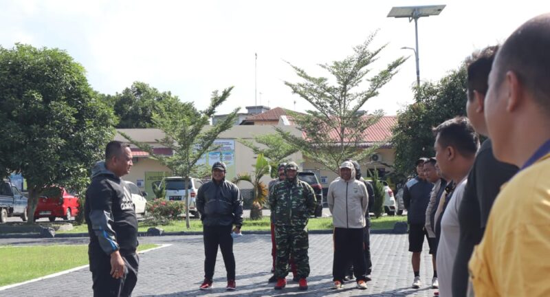 Kegiatan diawali dengan pemanasan berupa peregangan (stretching) di halaman Mapolres.