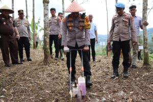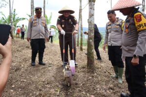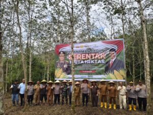 Kapolres Pakpak Bharat, AKBP Oloan Siahaan, SIK, MH melaksanakan penanaman jagung ini bersama segenap Forum Koordinasi Pimpinan Daerah Pakpak Bharat di areal lahan tumpang sari karet dan jagung milik masyarakat di Desa Buluh Telang Kecamatan Tinada.