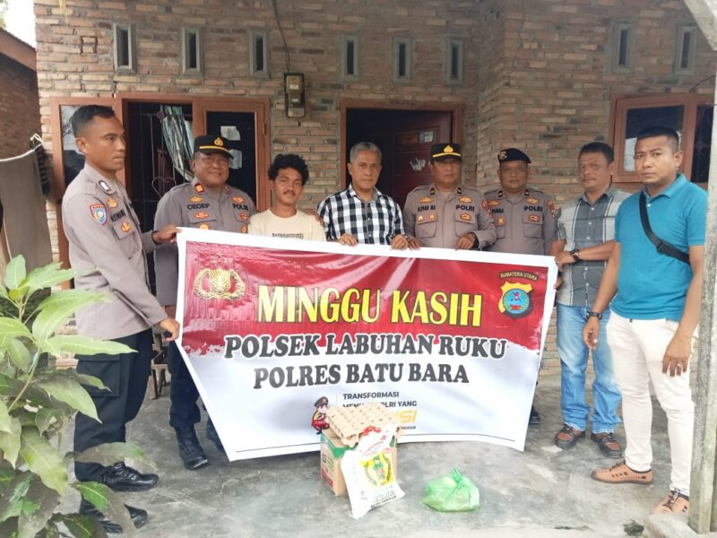 BATU BARA – Kapolsek Labuhan Ruku, AKP Cecep Suhendra, bersama dengan personil Polsek Labuhan Ruku, melaksanakan kegiatan “Minggu Kasih” dengan menyalurkan bantuan sembako kepada kaum dhuafa di wilayah hukum Polsek Labuhan Ruku. Kegiatan ini merupakan wujud kepedulian dan perhatian Polri terhadap masyarakat yang membutuhkan.