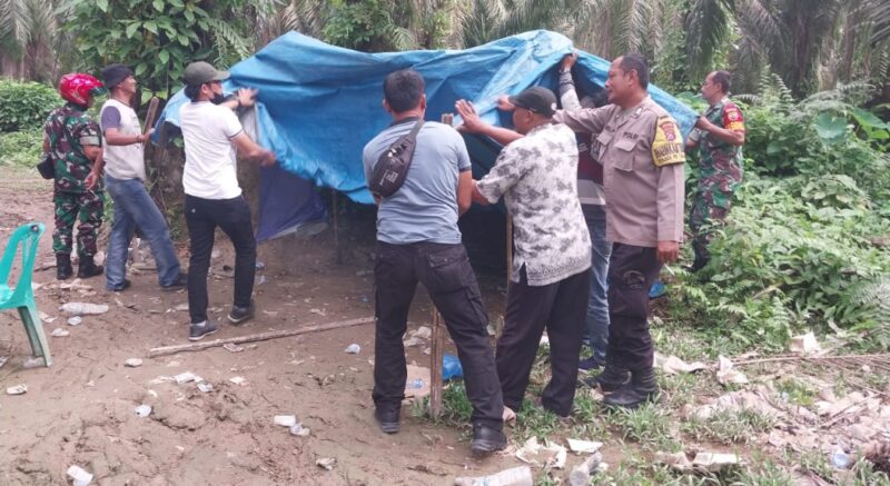 LANGKAT Teropong Barat | Forkopimcam bersama Polsek Padang Tualang melaksanakan razia Gerebek Sarang Narkoba (GSN) di sebuah gubuk yang terbuat dari tenda biru diduga sebagai tempat penyalahgunaan narkotika