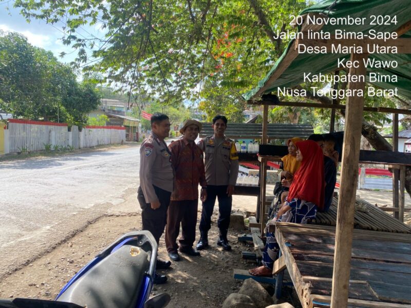 Bima, NTB (21 November 2024) Dalam rangka menjaga situasi keamanan dan ketertiban masyarakat (Kamtibmas) menjelang tahapan pungut hitung Pemilihan Kepala Daerah (Pilkada) Serentak Tahun 2024, Polsek Wawo yang tergabung dalam Operasi “Mantap Praja Rinjani 2024” melaksanakan patroli dan memberikan imbauan Kamtibmas di Desa Maria Utara, Kecamatan Wawo, Kabupaten Bima, pada Rabu pagi (20/11/2024).