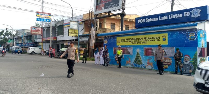 Lima Puluh, Batu Bara – Personel Pos Pengamanan (Pos Pam) I Simpang IV Lima Puluh Polres Batu Bara melaksanakan kegiatan pengaturan lalu lintas (Gatur) pagi di depan Pos Pam, Rabu (31/12/2025). Kegiatan ini merupakan bagian dari Operasi Lilin Toba 2025 yang bertujuan untuk memberikan pelayanan dan menjaga keamanan masyarakat selama libur Natal dan Tahun Baru.