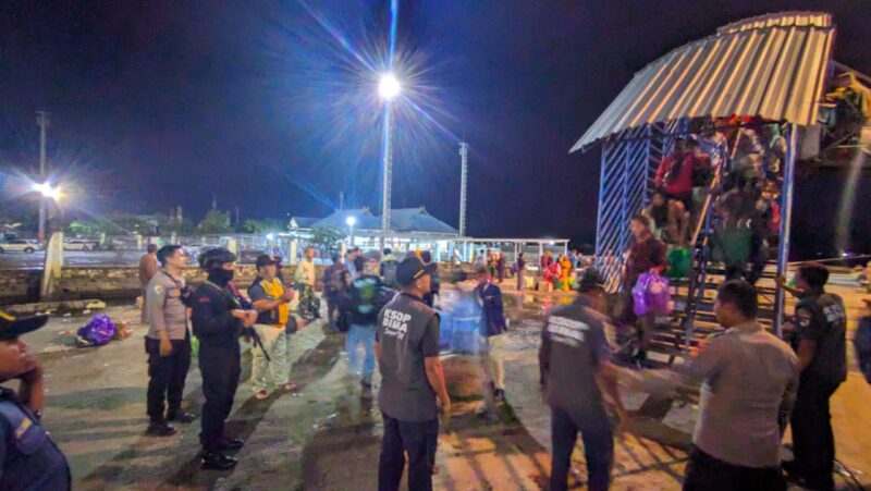Kota Bima, NTB (3 April 2025) – Personel Pos Terpadu Pelabuhan Bima melaksanakan pengamanan dan pemantauan terhadap arus balik penumpang kapal KM. BINAIYA yang tiba di Pelabuhan Bima pada Kamis (3/4) pukul 01.50 WITA. Kegiatan ini berlangsung di area Pelabuhan Bima, Jalan R.E. Marthadinata, Kelurahan Tanjung, Kecamatan Rasanae Barat, Kota Bima.