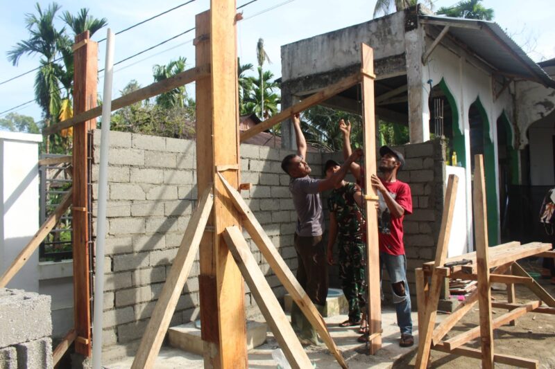 Salah satu sasaran yang tengah dikebut yakni perehaban Rumah Tidak Layak Huni (RTLH). Dalam proses pengerjaannya, tampak personel TNI dan warga saling bahu-membahu, mulai dari penyusunan batako hingga pengerjaan dinding rumah.