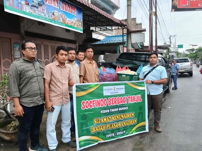 Batu Bara, Sabtu (14/03/2026) – Bulan Suci Ramadhan 1447 Hijriah menjadi momen bagi PT Sofin Indonesia (Socfindo) Perkebunan Tanah Gambus untuk mempererat tali silaturahmi dengan masyarakat sekitar. Perusahaan menggelar kegiatan berbagi takjil yang diadakan di Jalan Lintas Desa Simpang Dolok, Kecamatan Lima Puluh Pesisir, pada pukul 17.30 WIB.