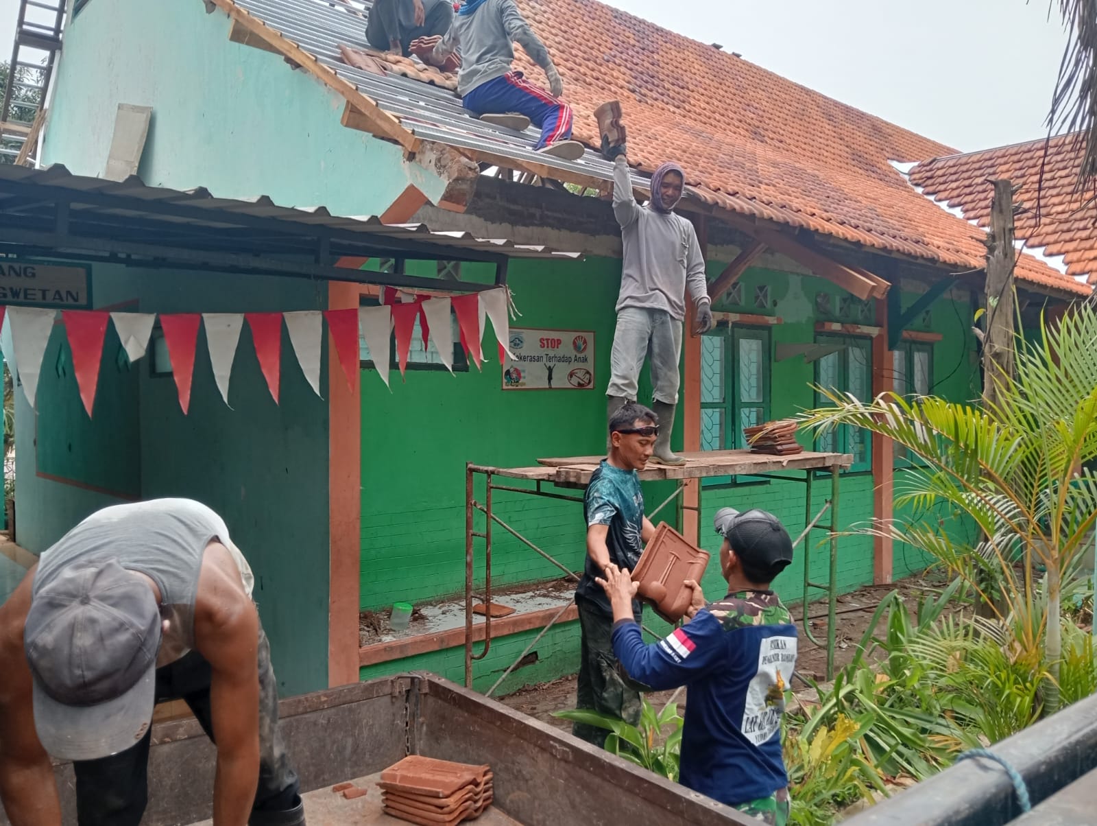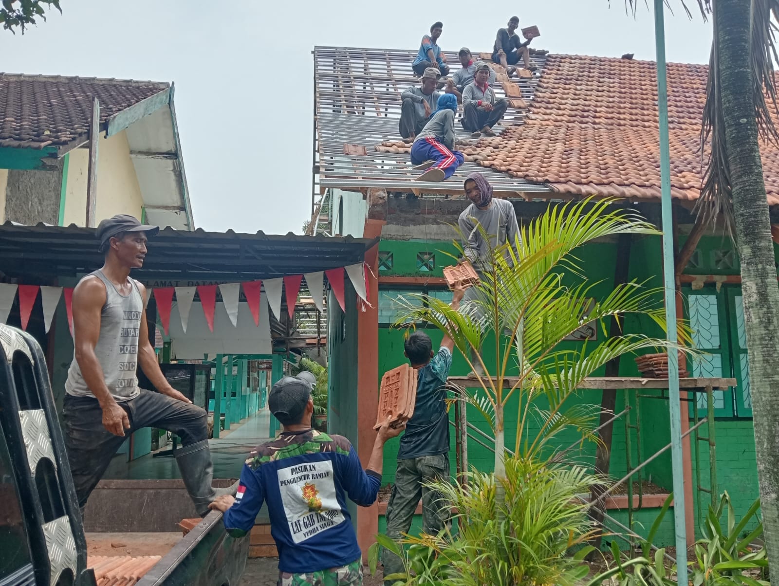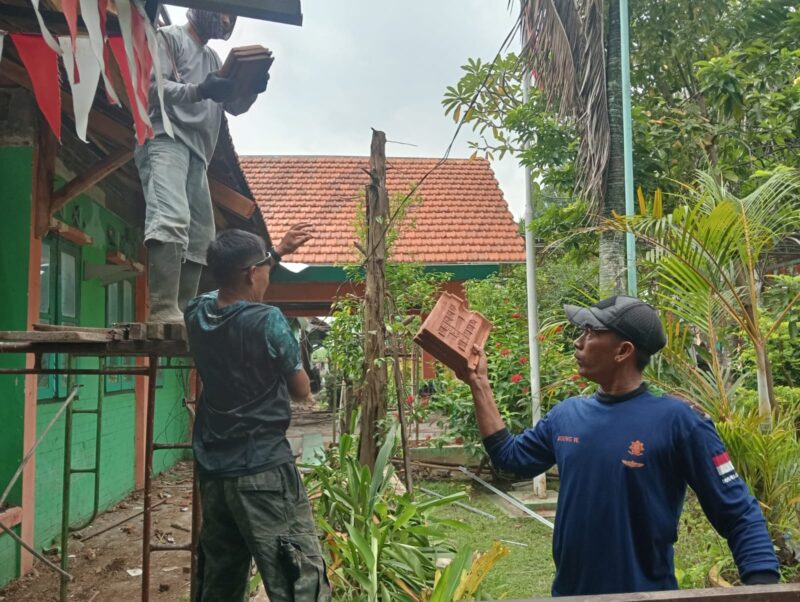 Puasa Tak Surutkan Pengabdian, Atap Sekolah SMPN 2 Gondangwetan Mulai Terpasang