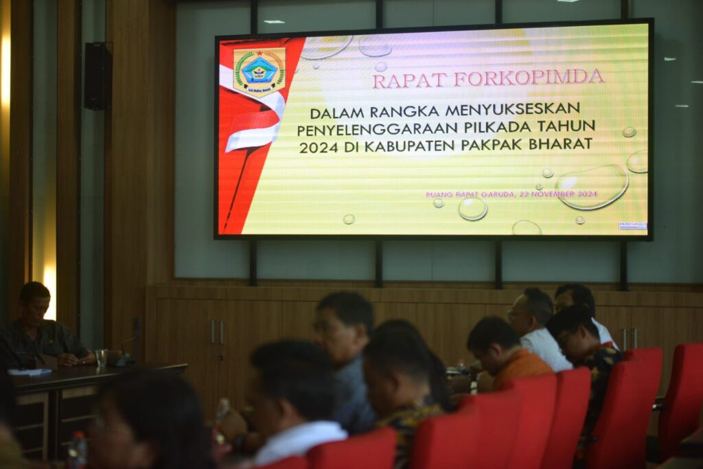 Teropong Barat.co/Pjs.Bupati Pakpak Bharat Dr. Naslindo Sirait memimpin rapat Forkopimda pada hari Jumat (22/11/2024) yang dihadiri Dandim 0206/Dairi, Kajari Dairi, Ketua Pengadilan Negeri Sidikalang, Ketua DPRD Pakpak Bharat, Wakapolres Pakpak Bharat, Ketua KPU, Ketua Bawaslu, dan Jajaran Pemerintah Kabupaten Pakpak Bharat.