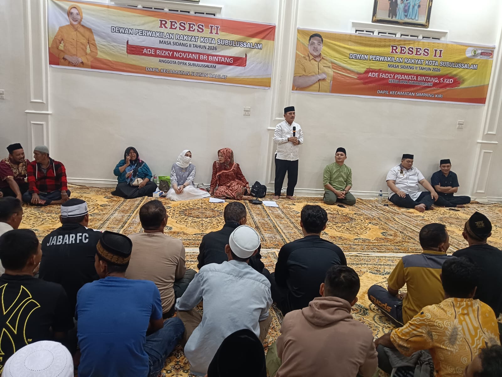 Ketua DPRK Subulussalam Ade Fadly Pranata Bintang menyampaikan arahan dalam kegiatan Reses II DPRK Subulussalam masa sidang II tahun 2026 yang dihadiri masyarakat Kecamatan SIMPANG KIRI DAN Sultan Daulat.